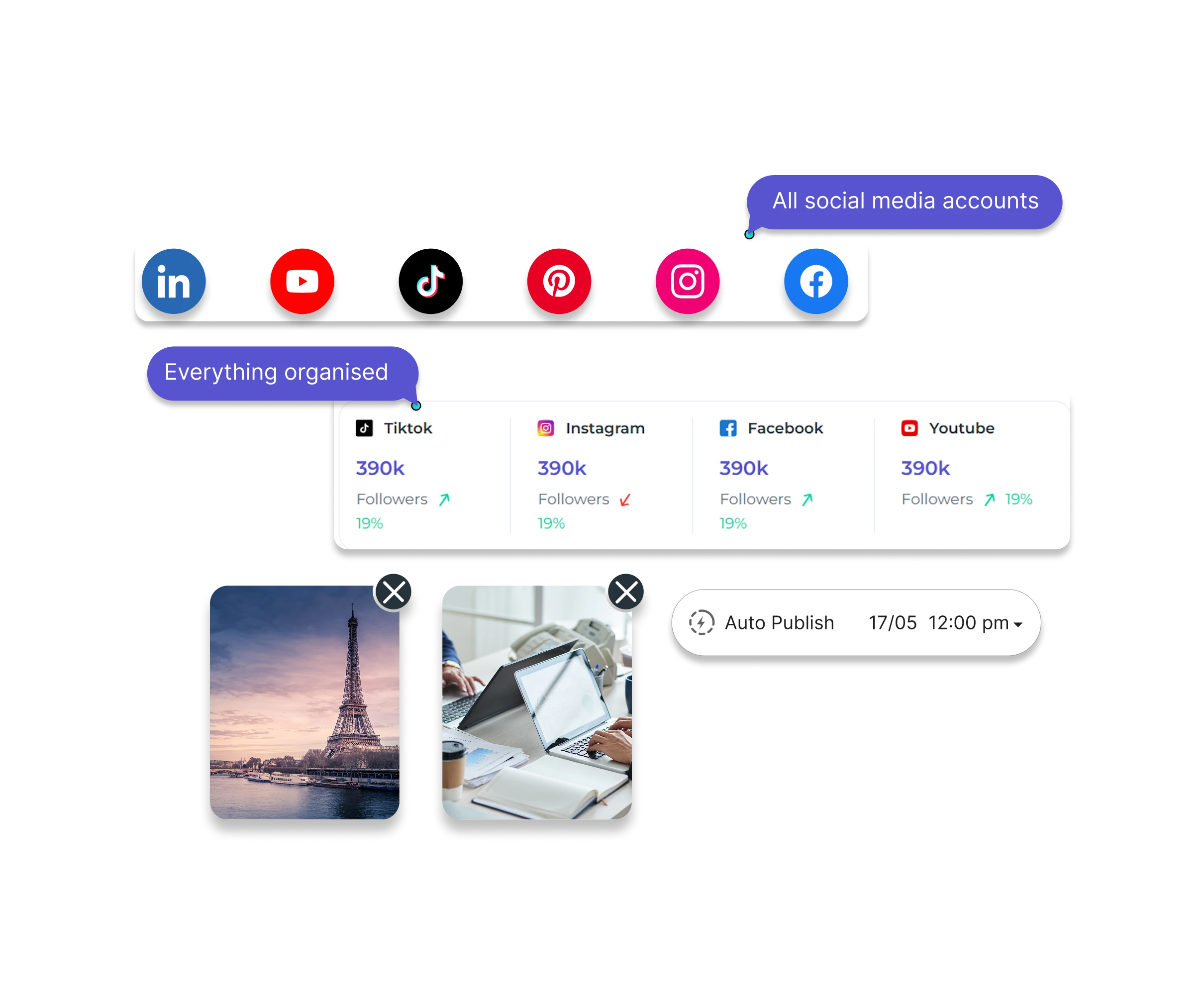 Manage it all, from Reels to Pins to TikTok, without breaking a sweat.